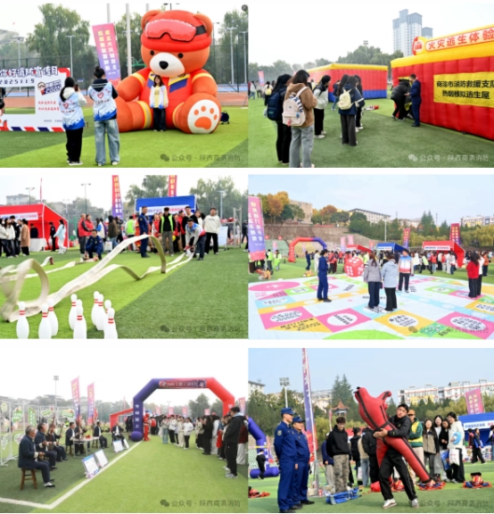 启动仪式后,与会领导观摩体验了现场活动。现场设置了“消防文创街区”、消防车辆装备器材展示区、热烟逃生体验区、“互动拍照打卡区”、“非遗静板书消防科普区”及消防运动会、水带保龄球、抢凳子答消防、拼图找消防隐患等趣味活动,吸引众多师生前来参观体验和打卡合影,通过近距离观摩和沉浸式体验让师生在参与中学习消防知识,掌握逃生疏散技巧,有效提升了应急避险能力。