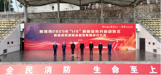 11月4日,商洛市2025年“119”消防宣传月启动仪式暨商洛市消防志愿者联盟成立大会在商洛学院北新街校区体育场隆重举行。